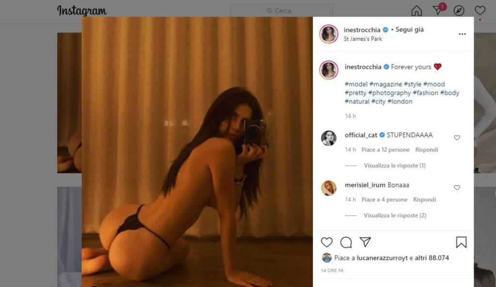La modella classe 1994, Ines Trocchia, sta conquistando il pubblico di Instagram (oltre un milione i follower), a suon di scatti. La giovane, nata a Nola in provincia di Napoli, è diventata famosa dopo aver partecipato a programmi sportivi su Sportitalia con Michele Criscitiello. Ines è una grande tifosa nerazzurra e non ha mai negato questa sua fede calcistica nonostante le sue origini partenopee.