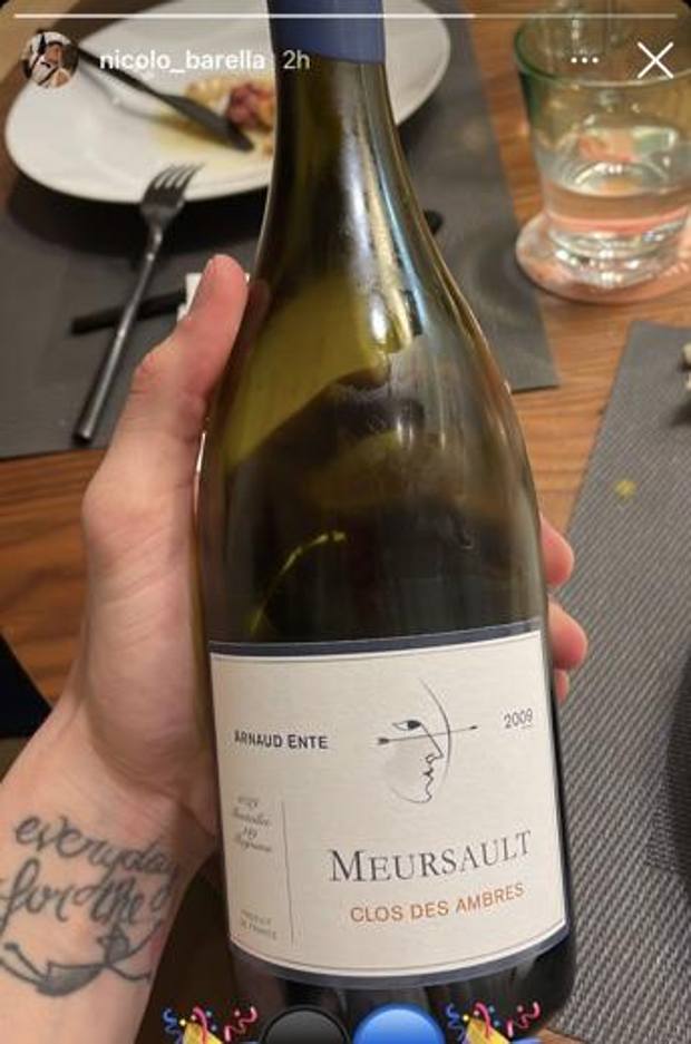 Barella è appassionato e profondo conoscitore di vini e sui social ha postato la foto della bottiglia che accompagnato la cena del dopo partita. È un Meursault 1er Cru “Les Clos des Ambres” del 2009, una bottiglia da intenditori che raggiunge quotazioni sopra i 1.200 euro, un borgogna del Domain Arnaud Ente che è considerato l’astro nascente più luminoso di tutta la regione.